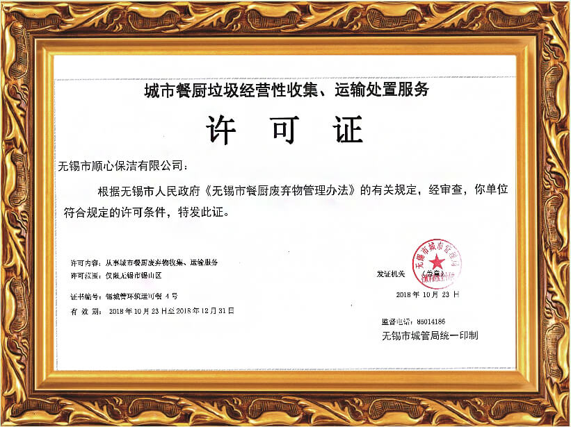 城市餐厨垃圾经营性收集、运输处置服务许可证
