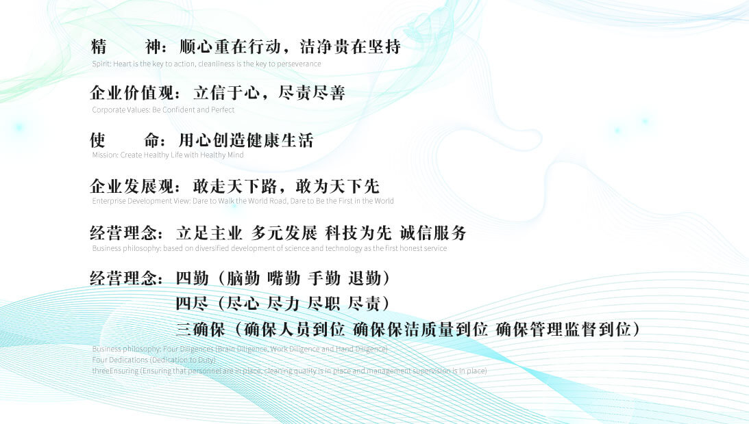 以人为本、以质为先、严格管理,以客为尊,开拓创新、与时俱进。